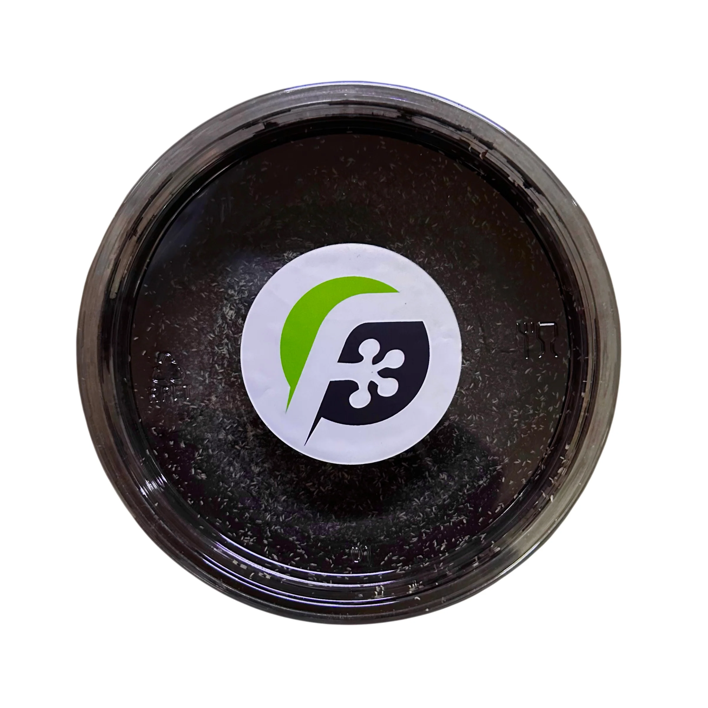 These ship in a shallow 8 oz culture already producing with offspring and adults. These are not as dense as our deep dish calcium clay cultures, hence the price difference. All cultures are shipped via our premium clay - Springtail Chocolate. Clay is a superior medium for springtail production and ease of feeding. These will typically ship in our square snap cups, but may ship in circular cups (picture 3 and 4).